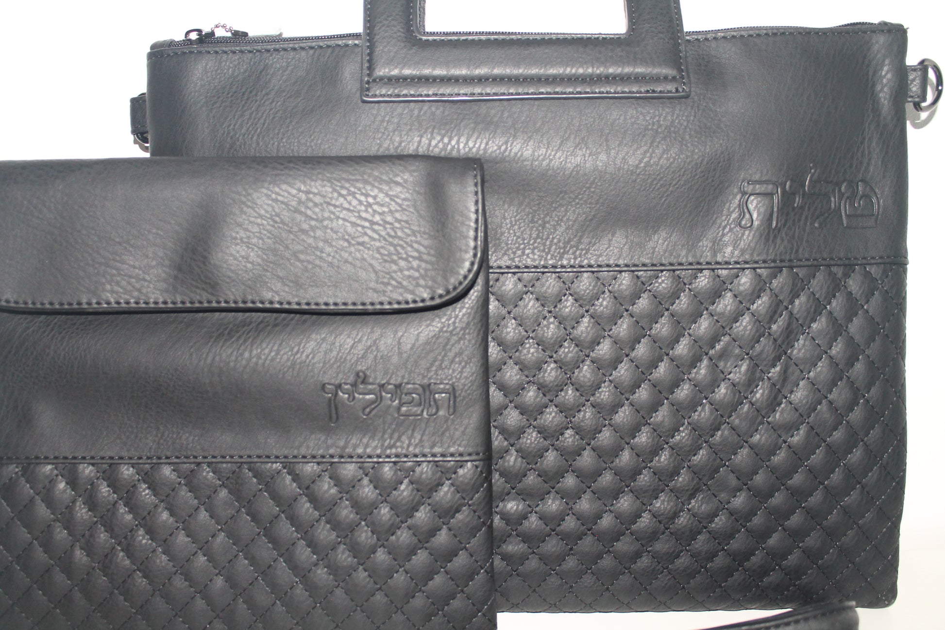 כיסוי טלית ותפילין עם ידית ורצועת נשיאה דגם דמוי עור שחור