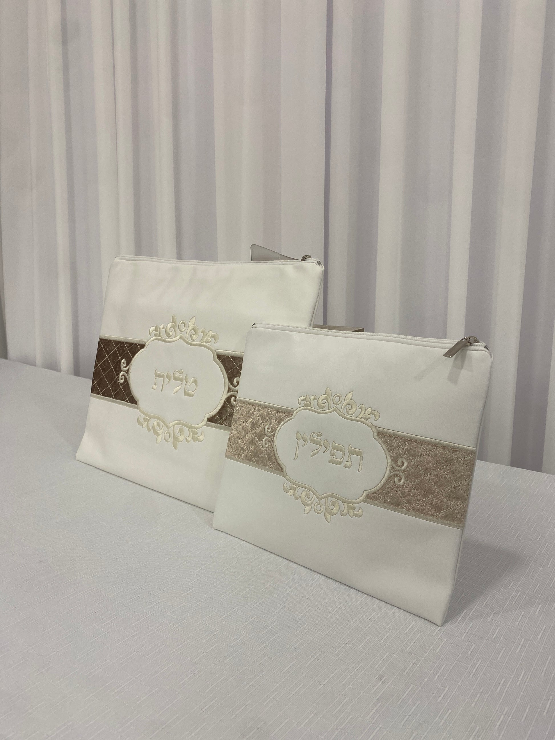 סט כיסוי טלית ותפילין לבן