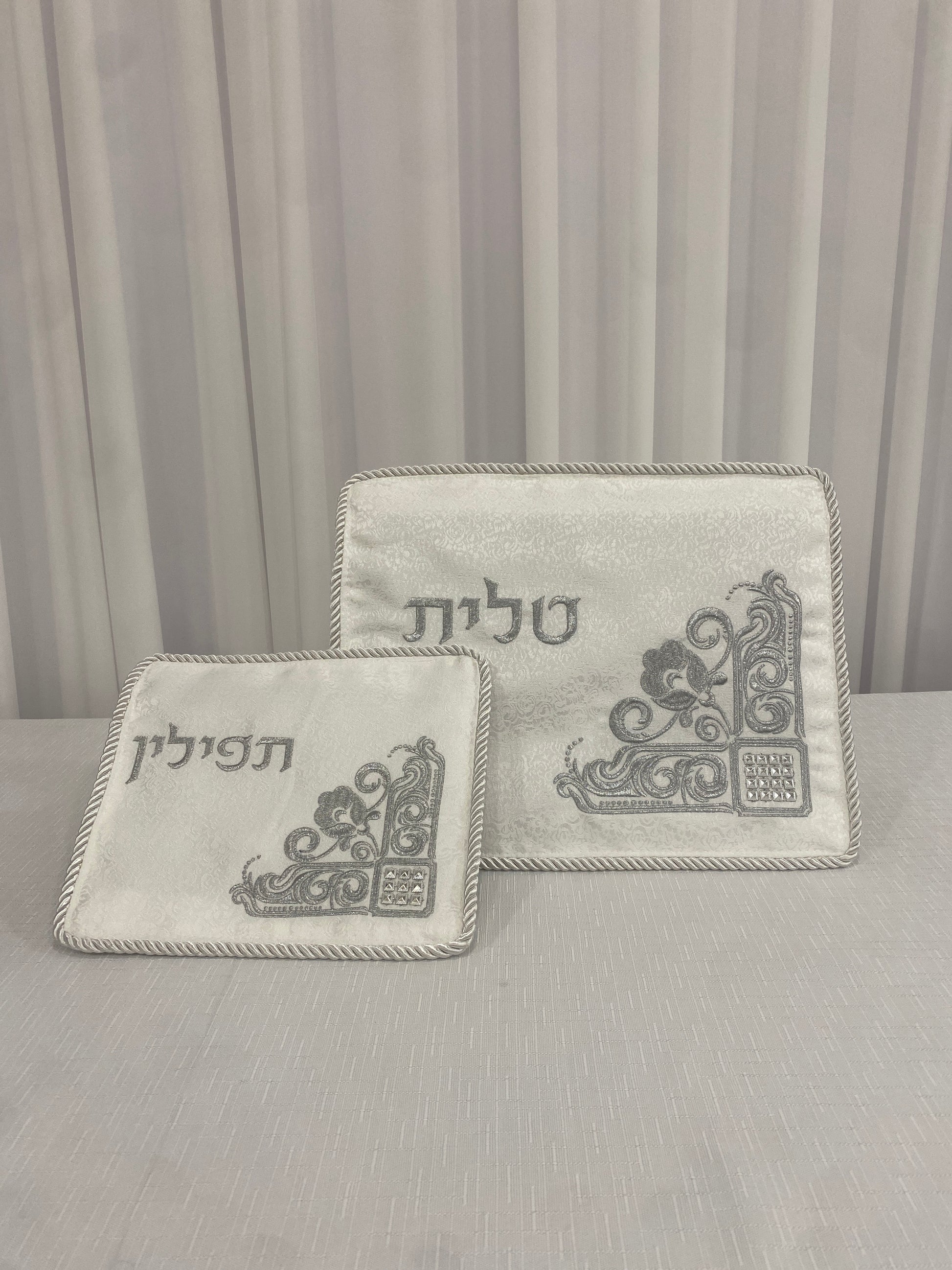 סט כיסוי טלית ותפילין לבן כסוף